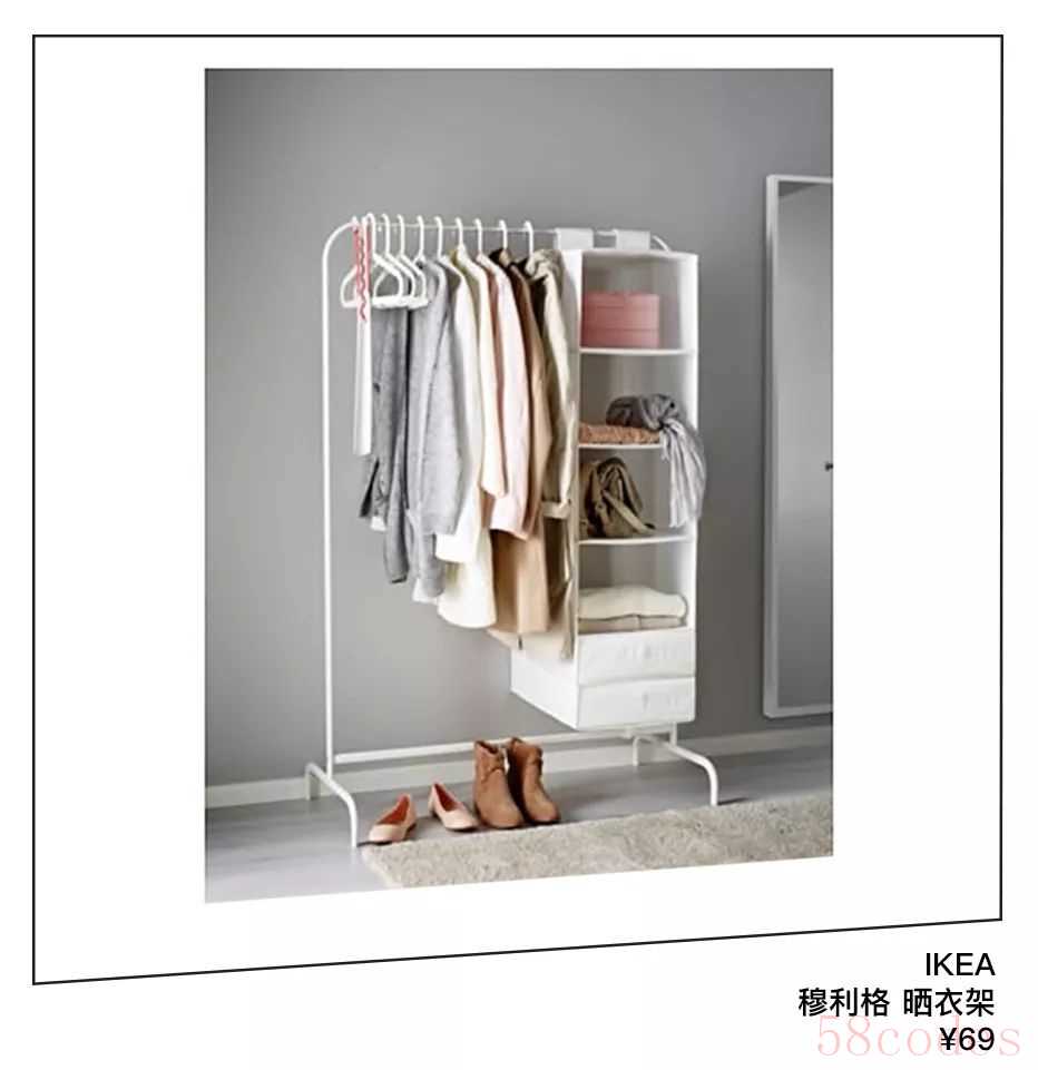 除了衣柜,如果是刚租房,空间不大又没有什么预算的小透明也可以选择买一个这样的衣架来挂平常的衣服,置物和晾晒一体非常方便!