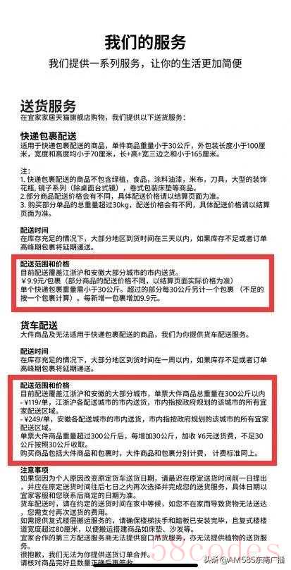 以宜家送货标准来说,一般都是小件快递、大件货车配送。小件30公斤内,快递费收9.9元;大件有119元、249元等不同价格。
