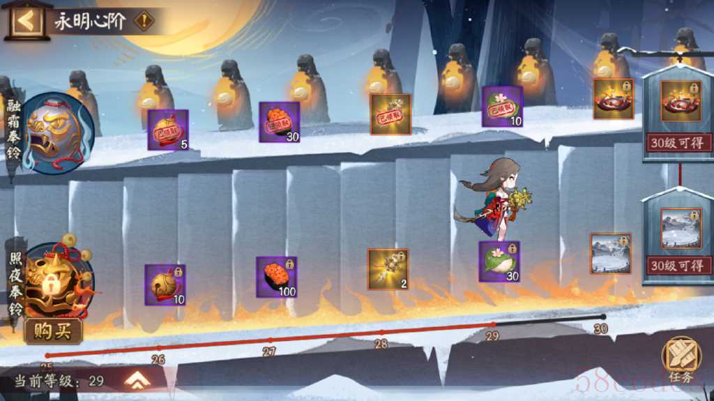 完成每日任务、成就任务会获得“照夜铃”,数量达标会解锁相应等级奖励。