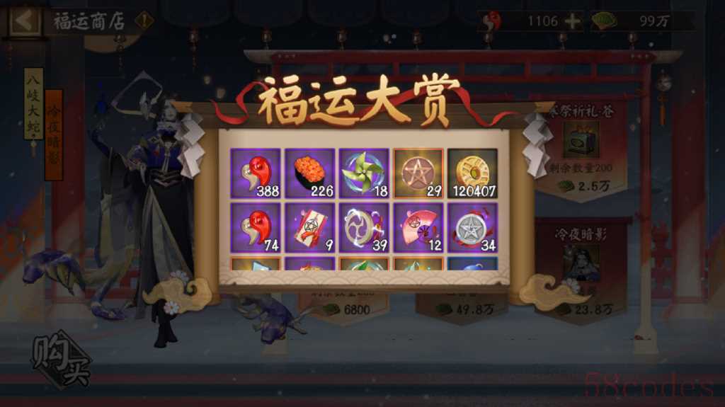 最大的区别在于,本期活动商店没有积分等级限制,第1天就能兑换SSR/SP随机召唤券以及八歧大蛇·冷夜暗影新皮肤。(如果是想赌脸在这里出未收录式神,可以先爬塔换掉召唤券,再进行抽卡也可以。)