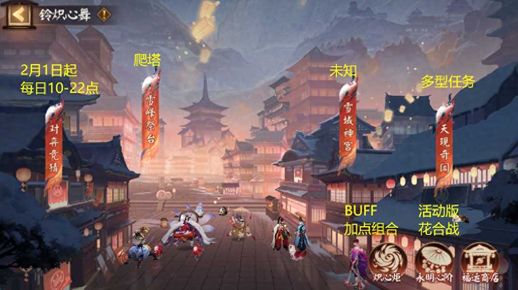 日常步骤:先去“天现奇闻”拿活动BUFF道具跟各类任务奖励,然后用活动阵容/式神刷层数,然后边刷层数边去给BUFF加点。