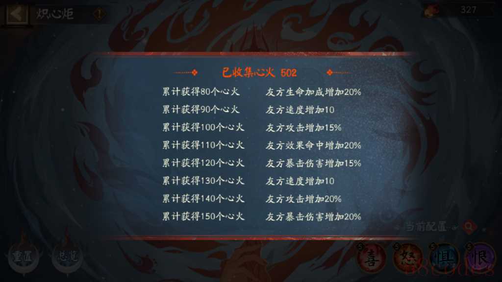 加点道具“心火”通过“天现奇闻”、“雪峰祭台”获得,数量越多解锁的属性加成越多越高越好。