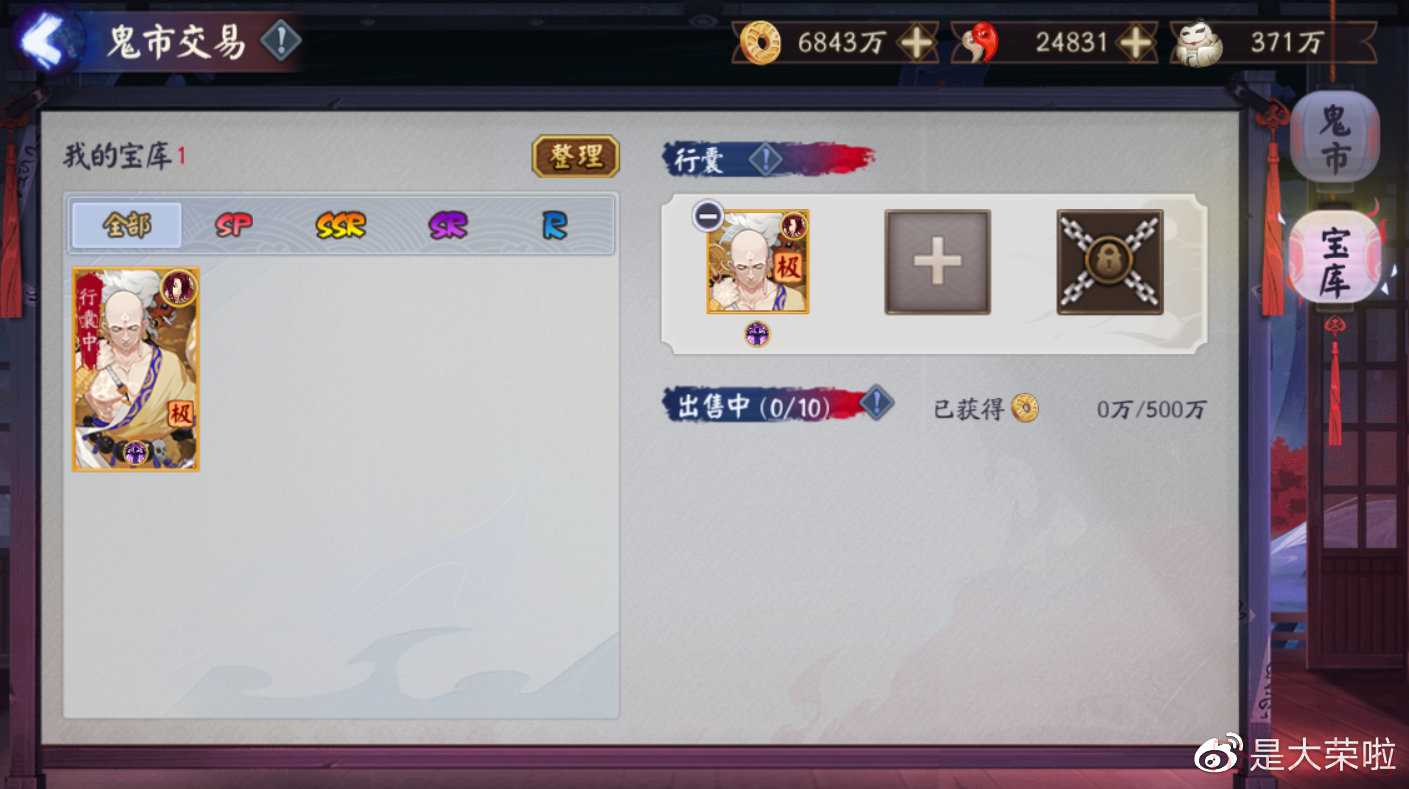 通过战斗决胜获得的「极·式神」可以放到这里进行寄售,也可以在这里花金币购买「极·式神」。