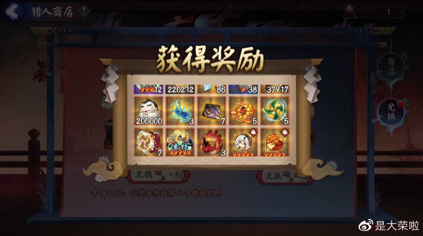 这次4类宝箱开启顺序大荣个人推荐:御魂>体力=达摩>式神碎片。