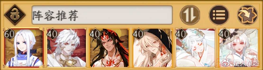 ③协战输出队:以不知火提供二次普攻为核心的普攻输出队伍(鬼切、SP红叶、食灵、鸦天狗、迦楼罗、SR/SP姑获鸟、酒吞等等)。
