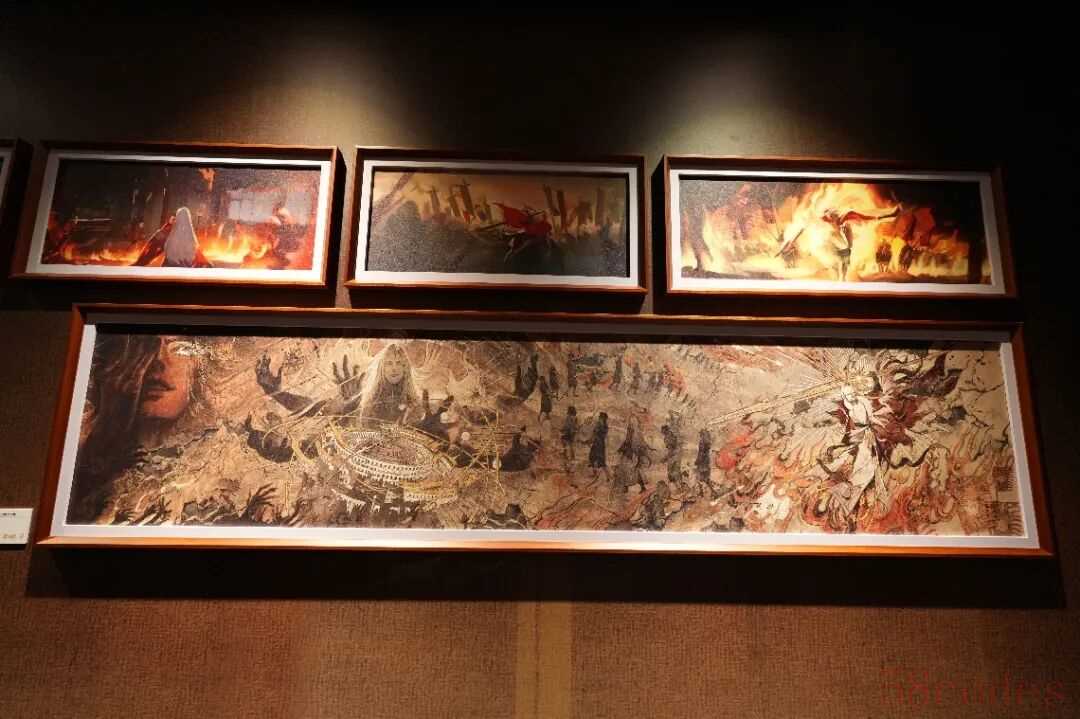 值得一提的是,该区域还展陈了此次《阴阳师》九周年的部分美术内容,其中包括了10月新式神平将门的概念设定图——壁画风格的笔触之间,描绘出了具有历史质感的恢弘画面。