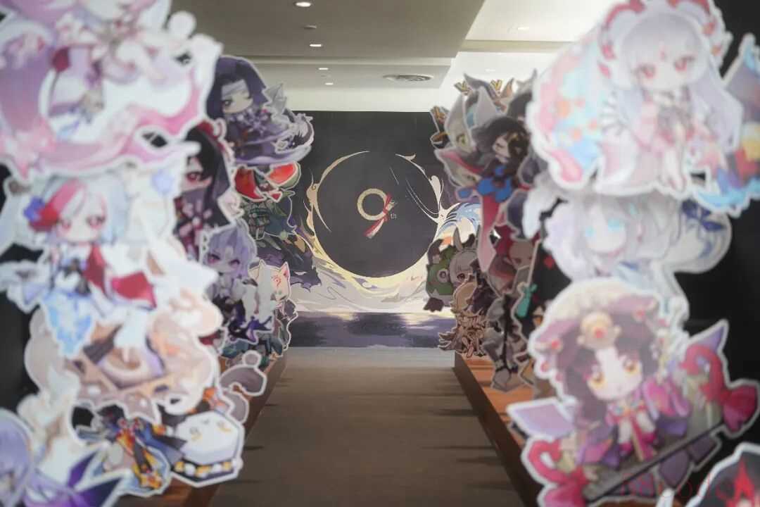 就在九周年庆典当天,这款网易的旗舰产品再度展现出惊人的活力.根据七麦数据显示,《阴阳师》9月10日开服当天便冲上iOS游戏畅销榜第九名,周年主题CG《雪御前》登陆B站即跻身当期全站排行榜第九位,相关微博话题火速登上热搜。畅销榜第九名、B站全站排行榜第九位、九周年庆典……有趣的是,如果数字会说话,而这组「九」的巧合,正悄然诉说着这款长线运营产品不减当年的号召力。在《阴阳师》迎来九周年之际,GameLook受邀参加了以「现世寮约」为主题的玩家座谈会,并体验了同期举办的九周年线下互动艺术展。通过一整天的沉浸式参与,我们看到了这款经典产品在内容革新、玩家沟通与IP塑造上的全新思考。与玩家「天长地九」《阴阳师》九周年线下互动艺术展在杭州天幕里举办,在官方的下,笔者终于在9月26日当天来到现场,体验到线下互动艺术展的真容。步入展馆二层,官方精心策划的艺术展区便如一幅徐徐展开的平安京绘卷,将游戏内的经典场景逐一具象化。