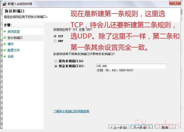 4、对于win7、win8、win10系统,在Windows自带防火墙中,建立新规则关闭445接口。