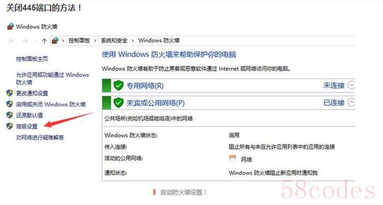 关闭445端口方法三:通过开启Windows系统防火墙来阻挡攻击