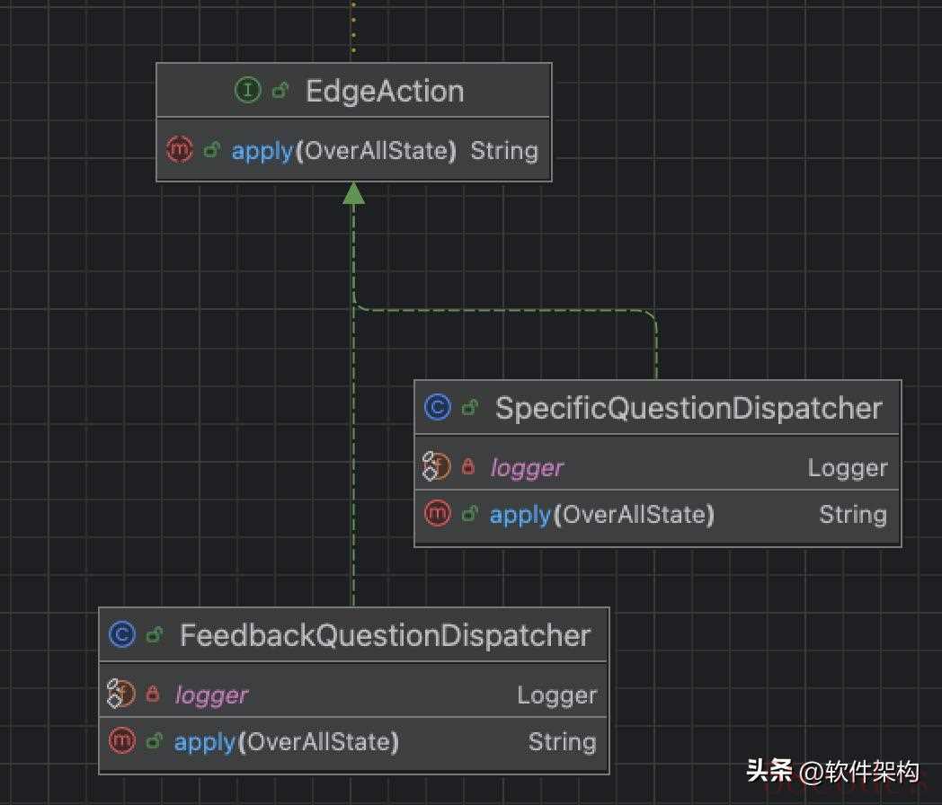 SpecificQuestionDispatcher 来完成。它们实现了 EdgeAction 接口,作用是在节点执行完后读取全局状态,决定下一步该走哪条边。