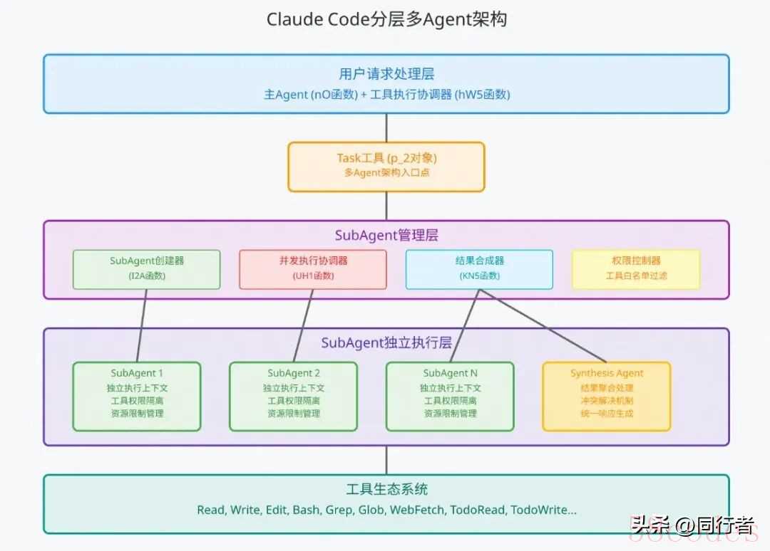 3.4.2核心创建流程与上下文隔离以下代码展示了工具的核心实现,核心需要关注不同子Agent的上下文隔离,主要体现在新增agent实例、独立的message队列、以及结果合成至主Agent。function createTaskTool(baseTools: any, model: any, subAgentConfigs: SubAgentConfig){