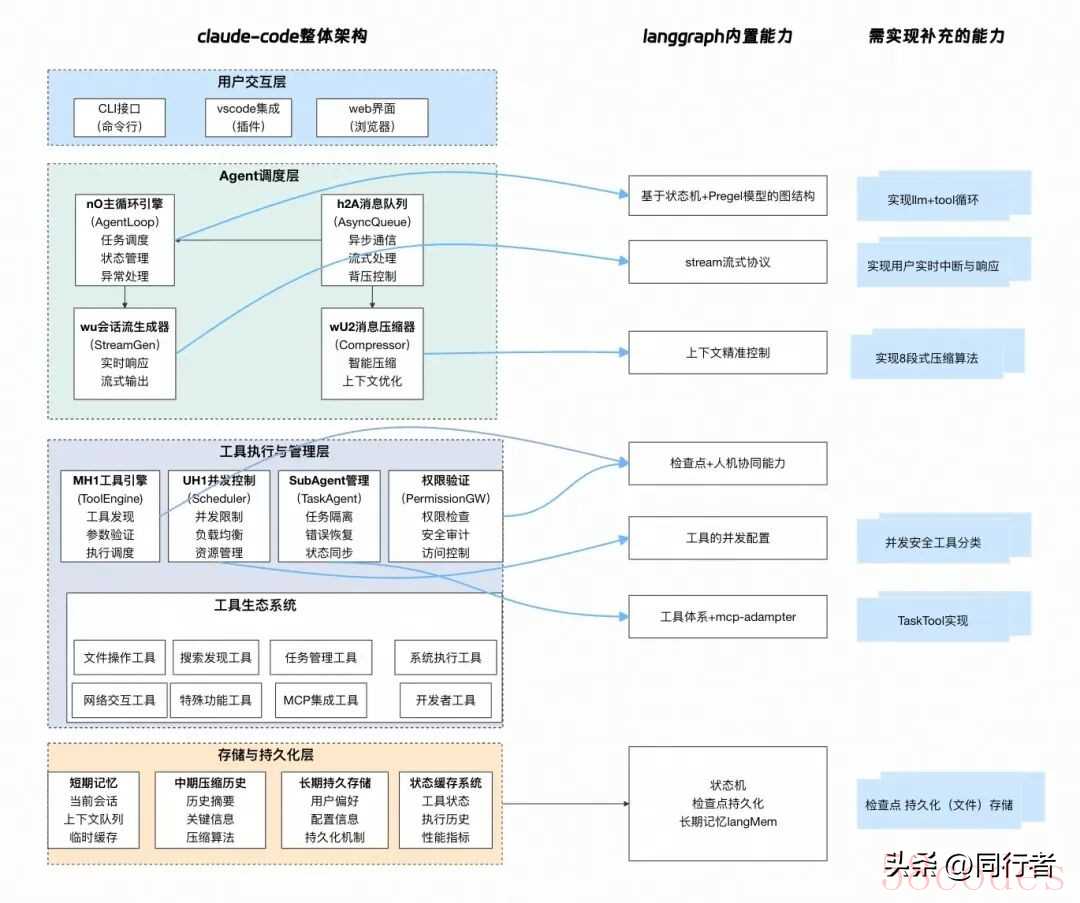 2.了解并实践langgraph,构建简版claude-codelanggraph是当下最流行的agent应用框架(之一),提供了丰富的llm应用相关能力,同时也有很多新的概念,可以实践一下,我觉得最核心需要关心的是 状态机State、图节点workflow、工具Tool 三个方面。所以下文在每个功能实现上会围绕这三个方面进行设计改动。期望通过本文的实践可以对claude-code的核心设计以及langgraph框架有一个初步的了解。如何一步步从最初的简单ReActAgent升级到一个简版的claude-code agent。开工前的背景介绍1.claude-code的逆向工程claude-code是anthropic公司出的一款cli工具,最近相当火,实际体验下来也很不错,个人认为是目前Code Agent领域的最佳实践。那么好学的程序员肯定会很好奇背后的实现原理。1.https://github.com/shareAI-lab/analysis_claude_code2.https://github.com/Yuyz0112/claude-code-reverse以上两个仓库对claude-code进行了全面的逆向分析,把相关逆向的提示词也开源了,我们完全可以通过这份repo来了解claude-code的核心实现。当然,这俩仓库的提示词信息量巨大,在llm逆向的过程中也会出现幻觉(确实会有一些前后矛盾的地方),整体还是不能无脑阅读,下面会结合这些分析以及个人的理解捋一遍核心实现。2.langgraph介绍langgraph是目前大模型应用开发最流行的框架之一,langchain衍生出的框架,专注于智能体应用的开发。详细的介绍可以参见langgraph官网:https://langchain-ai.github.io/langgraphjs/这里根据我的理解简要概括一下主要功能: