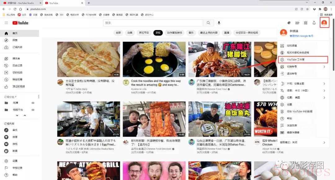 打开油管首页点击右上角「头像」再点击「YouTube工作室」