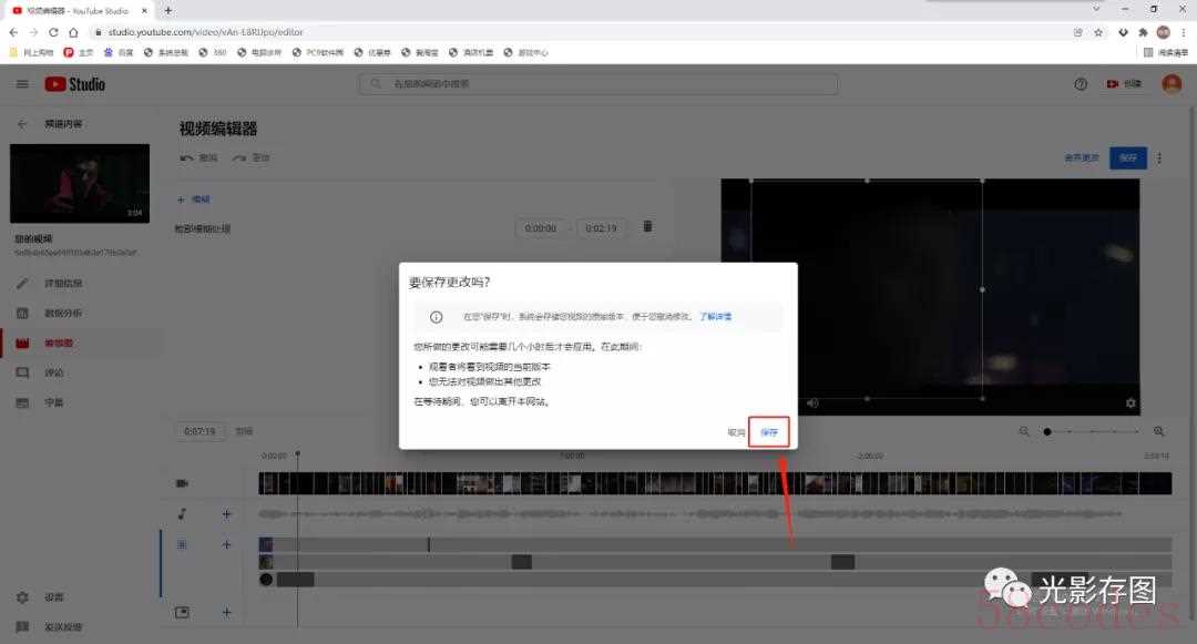 点击保存后会出现提示,马赛克可能会需要几个小时后才会应用,在应用期间观看者看到的还是原来的版本,您无法对视频做出其他更改。(你可以先把视频设置为私享视频,等马赛克生效后再转公开。)