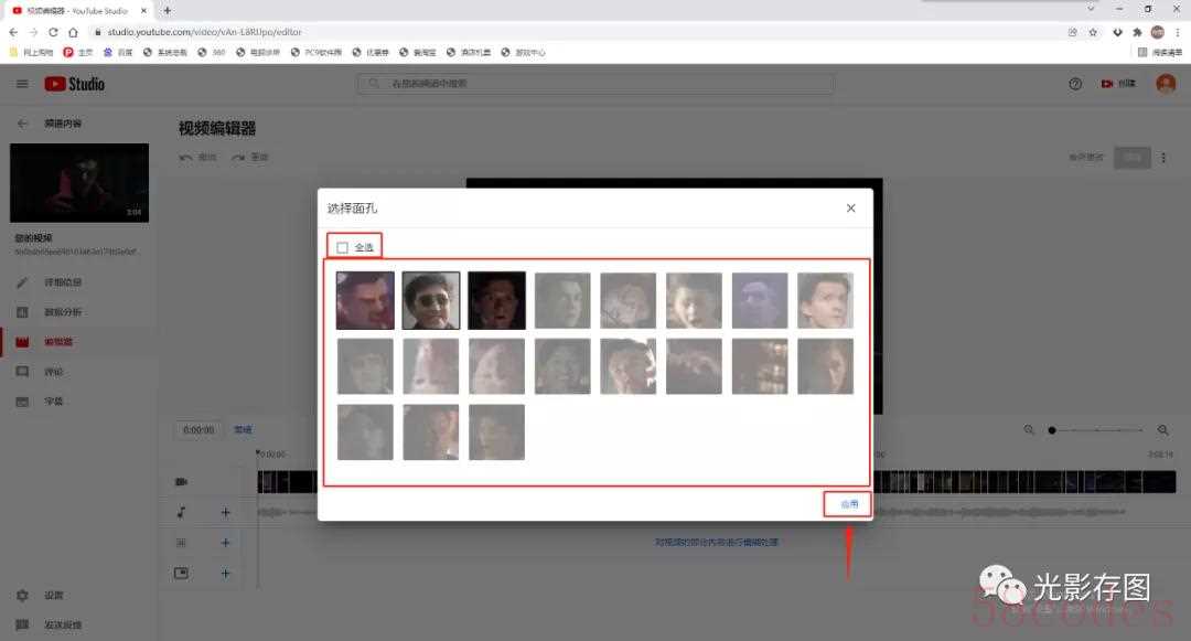 可以全选或是选择你想打马赛克的部分面孔,选择完毕后点击「应用」