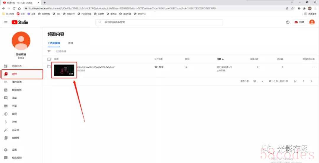 点击左侧「内容」再点击「你要打马赛克的视频」