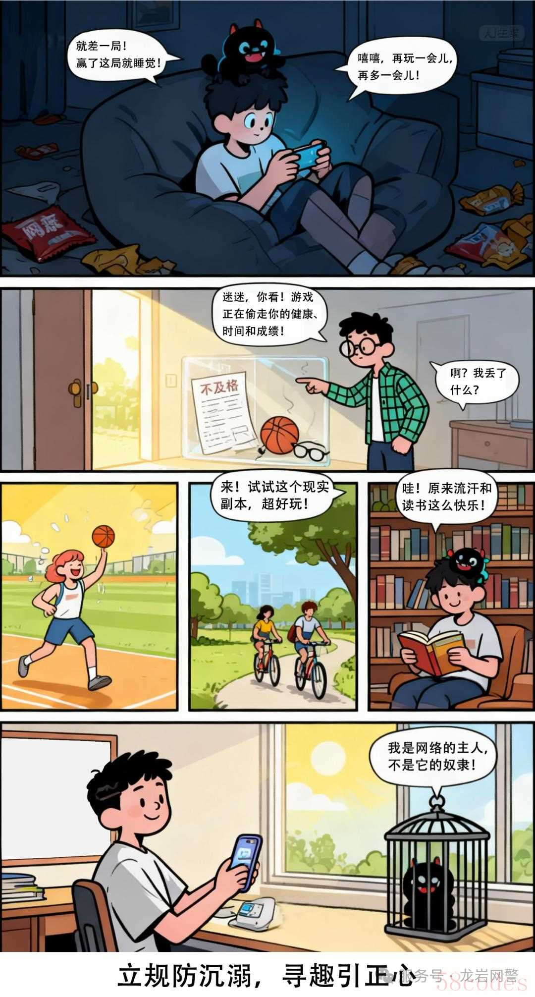 用体育运动、户外活动、家庭游戏、阅读兴趣等健康活动填充课余时间,转移其对网络的依赖。