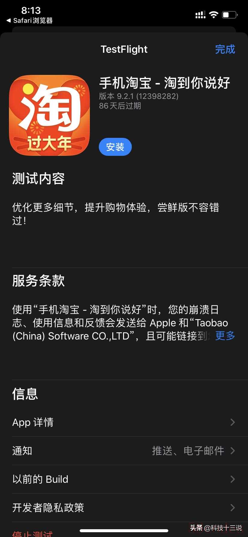 到这IOS淘宝测试版就安装完毕了,可以尽情的在黑夜中放心大胆的剁手了。