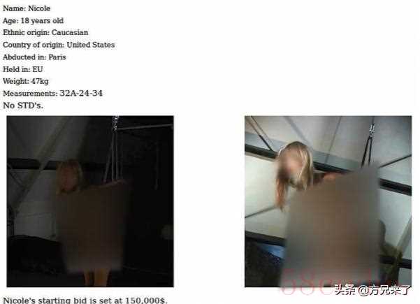 2015年7月27日,一位全身赤裸的女孩,正被挂在一个网上拍卖,她的双手被绑在一根铁柱上,身边还站着一个男子。拍卖网页上写着,女孩名叫妮可,年龄22岁,没有携带疾病。拍卖价格15万美元起。