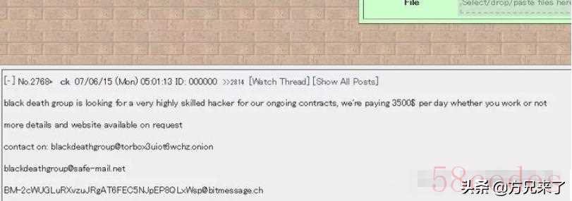 当时这条信息,在国外的其他论坛上,纷纷出现过。由于这条广告的大面积投放,黑死病组织,引起了很多网友的注意,大家都想知道,这个组织究竟是干什么呢?为什么会给这么高的价格招聘黑客?而且他们的网址为什么是一个特殊的网站呢?