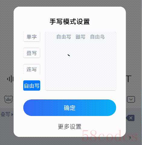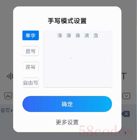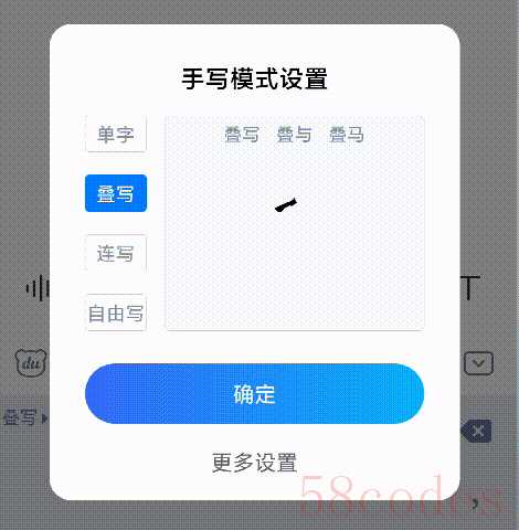 “叠写模型”是单字模型地小幅度升级版,在输入多个字的时候,不需要等待前一个字识别完成后再继续输入,而是可以直接连续输入,同时两个字输入的位置不需要错开。
