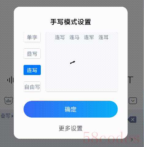 “连写模型”适用于喜欢写连笔字的用户,两个字或多个字之间如果连笔,百度输入法也能直接识别“一笔画”的多个字。