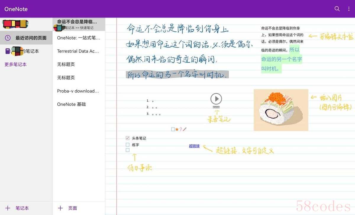 OneNote是微软出的老牌笔记软件了,我记得刚开始它的手写功能不太好,字写出来很不好看(我很看重这一点),最近又试了试发现优化了不少,说明是有在更新的,值得尝试。