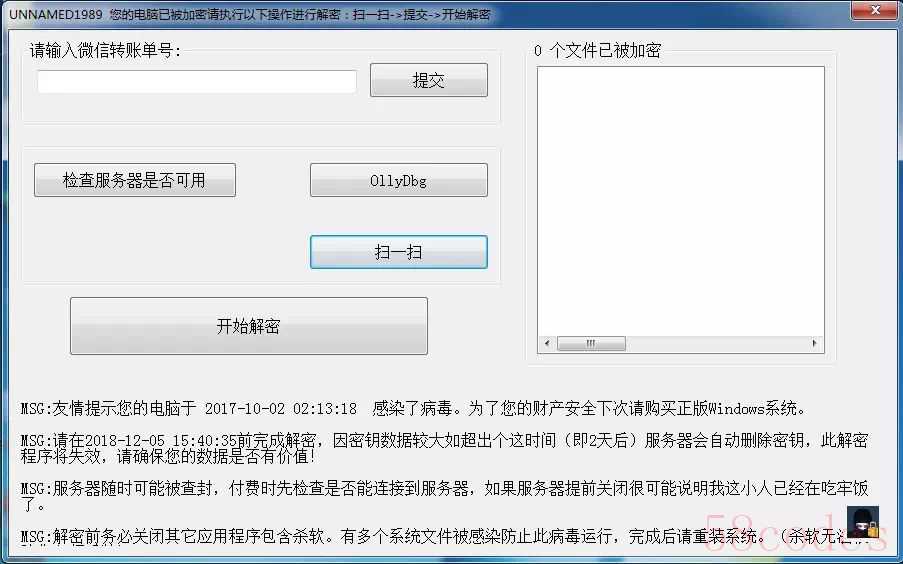 近日,国内出现了要求微信支付赎金的勒索病毒,入侵用户电脑后会加密用户文件,但不收取比特币,而是要求受害者扫描弹出的微信二维码支付赎金,获得解密钥匙。