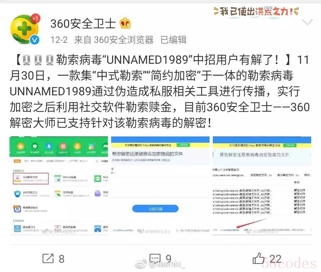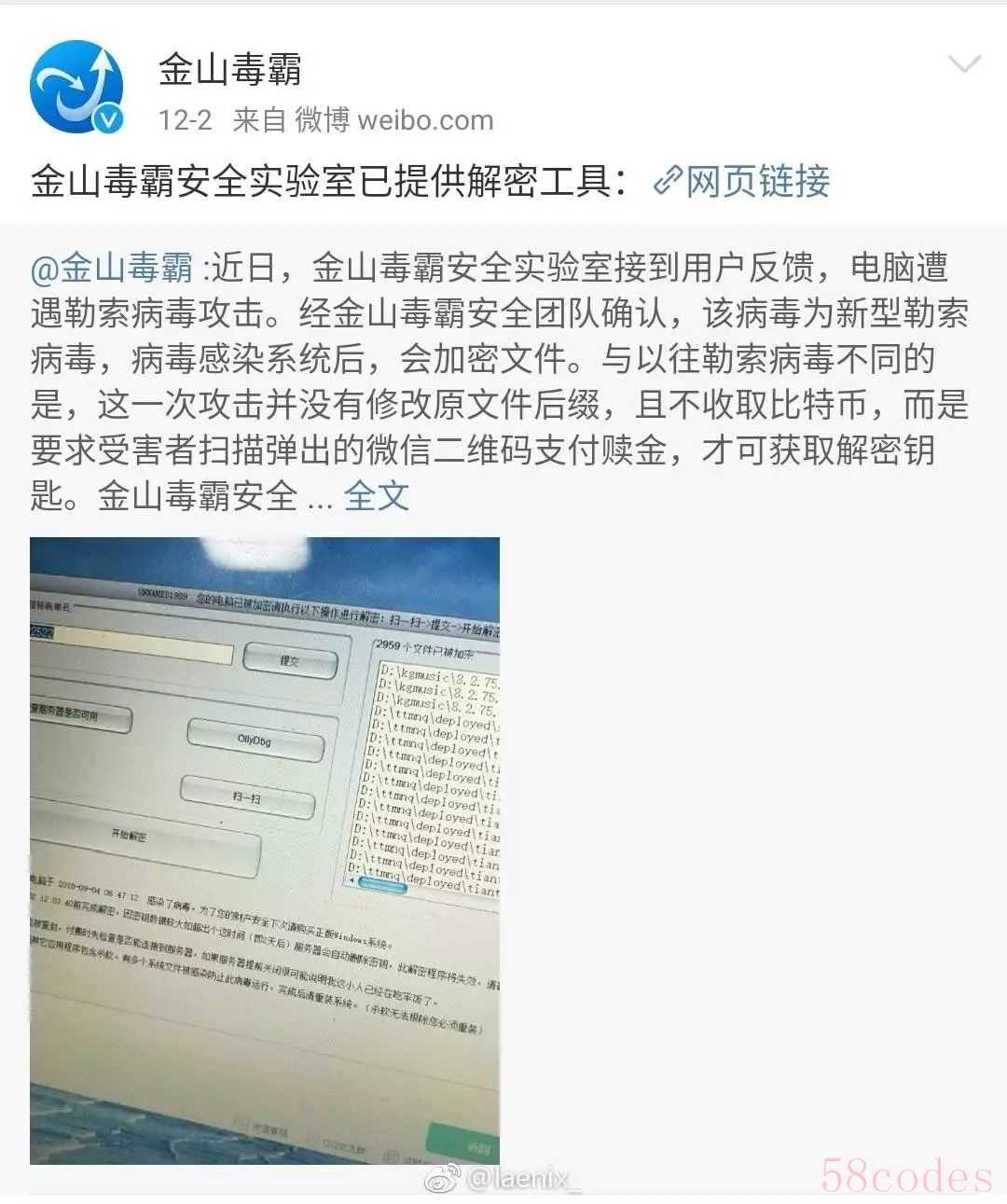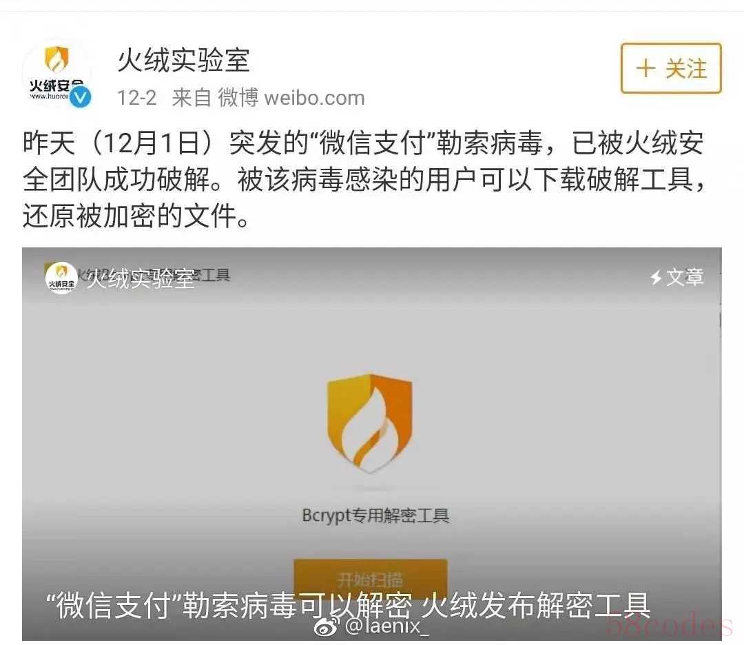 目前,腾讯、火绒、360、金山毒霸等已成功破解该病毒。