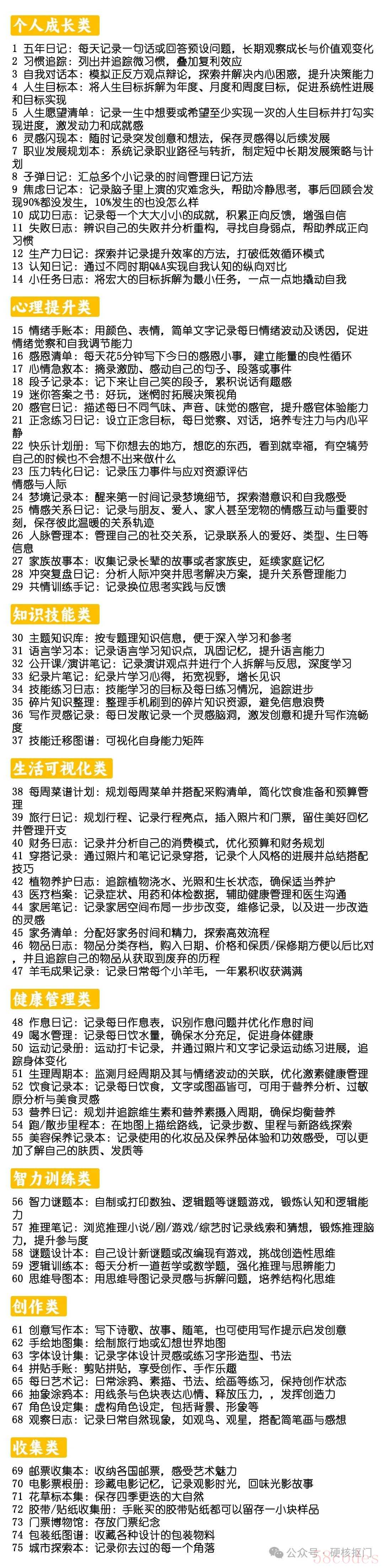 真的要多做记录~!给大家整理了75个超有意义的记录主题,可以按需求选。就算家里没有多的本子也推荐可以记在手机或者电脑上。