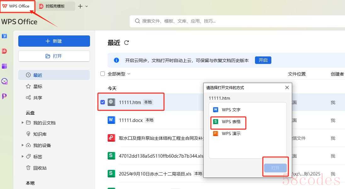 将要转换的pdf文件内容先转为word——打开word文件另存为网页(.htm;html)格式保存,如下图1所示——回到wps最近文件页面,鼠标右击刚刚保存的网页版文件,点打开,选择wps表格如图2所示——另存为excel.xlsl格式如图3所示就可以了