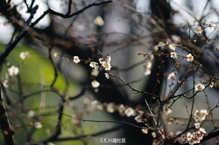 我主要在这里使用DA 200mm镜头拍摄。这款镜头其实已经颇有一点年份,体积不大但恒定F2.8大光圈。虽然比不上各类新镜头,但它的成像还算比较锐,焦外也足够柔和。唯一的问题是这支镜头的紫边/色散比较明显,即使收小光圈也无法完全抑制。所以,这里的几张梅花图我在后期时用PS ACR滤镜中的“去边”功能消除了紫边...不过,除此之外今天发布的所有照片都是原图(JPG)缩小。