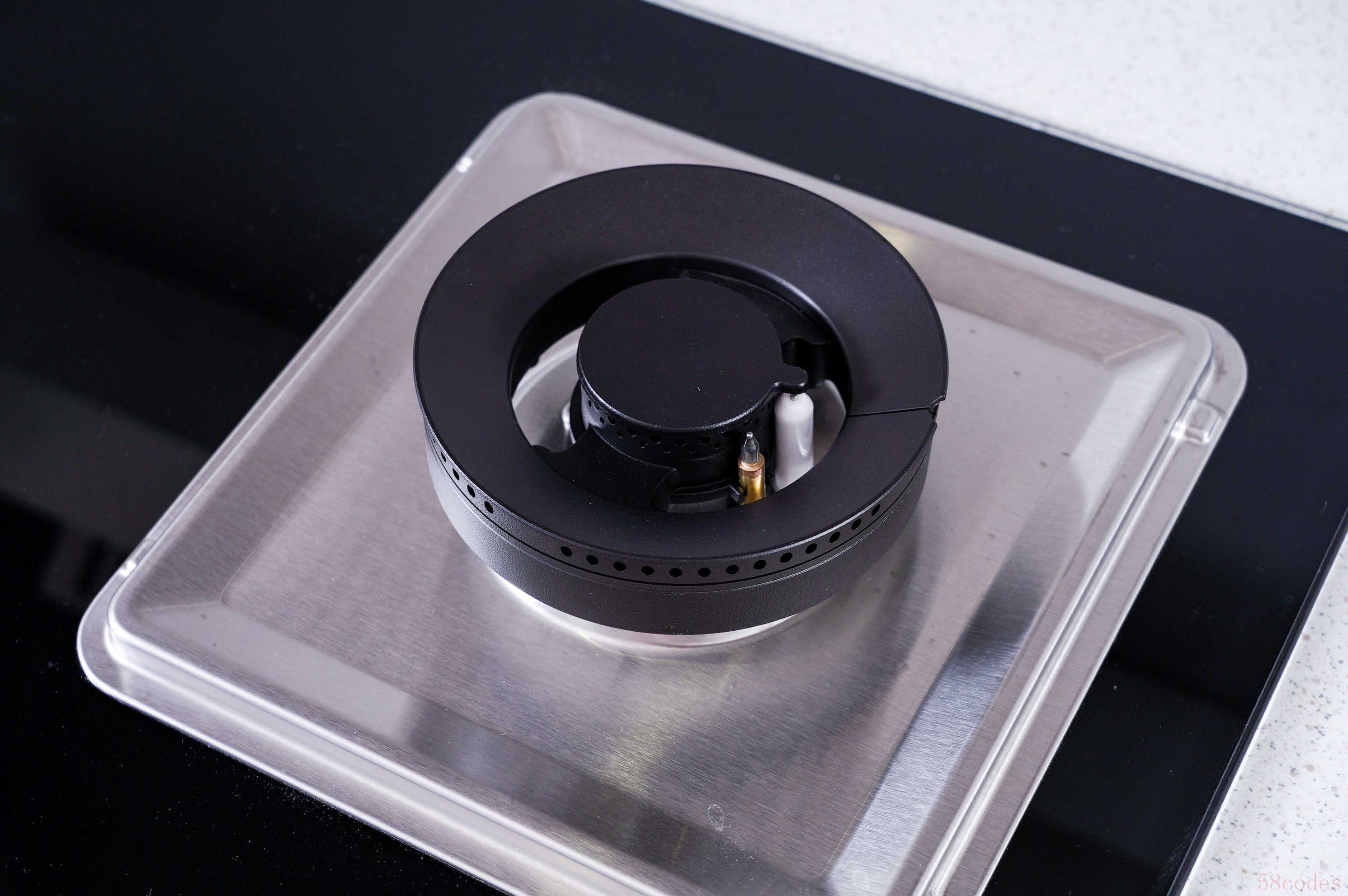 灶上还有个全封闭一体承液盘,烹饪时落入其中的食物、汤汁等等,不会影响到炉灶正常工作,也不会落入灶具内部。