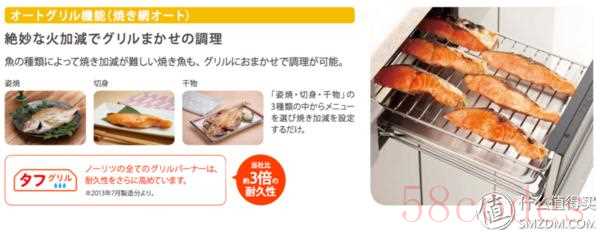 自动烧烤和下面提到的自动烧烤菜单一开始看确实会有些一头雾水,这就要从日本饮食的传统说起了。无论去居酒屋还是去便利店,各种烤鸡烤鱼都是十分常见的,而这也是日式燃气灶内置烤箱最初的用处——使用烤网进行姿烧、切身、干物三种类型的烧烤,能够根据设定模式自动进行,这就是常说的自动烧烤。