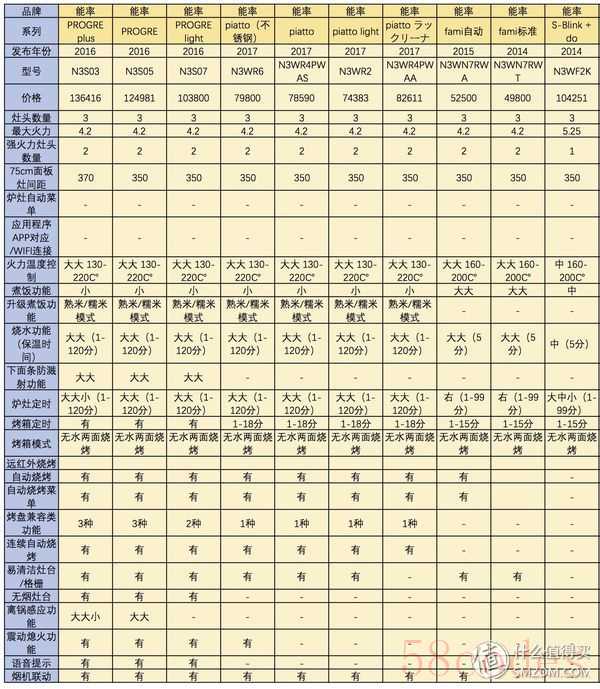 老实说这类产品我并不是很推荐,虽然五款中四款都配备了离锅感应这种“高大上”的功能。能率的旗舰款スマートコンロ是几款中性能最强的,价格也贵出天际,是目前在售日式燃气灶中最贵的,最大火力还只有3.5kw,完全没有性价比;
