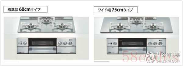 75cm版本在日本的销量相对60cm要低,价格也稍贵一些。但不要以为75cm面板只是大一些而已。由于照顾到开孔尺寸的问题,日式燃气灶的左右灶头间距要比国内产品少10cm甚至更多,通常只有33cm左右,能率的60cm版本产品灶头间距更是只有30cm,假如家里的锅都比较大,同时使用会有打架的情况。通常中高端系列的75cm面板嵌入式产品会将间距加大到35cm,不要小看这2厘米,对于人多锅大的家庭来说,这很重要。注意国内比较热门的诸如林内Mytone系列等75cm版本间距依然是33cm,选择的意义就不大了。
