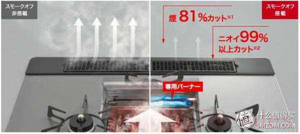 林内能率两家的嵌入式三头旗舰,以及林内中端的LiSSe拥有这个功能。林内宣称可以降低99%的味道和81%的烟,而能率宣称可以降低92%的味道和80%的烟,但由于两家的计算方式不太一样,实际效果差别不大。