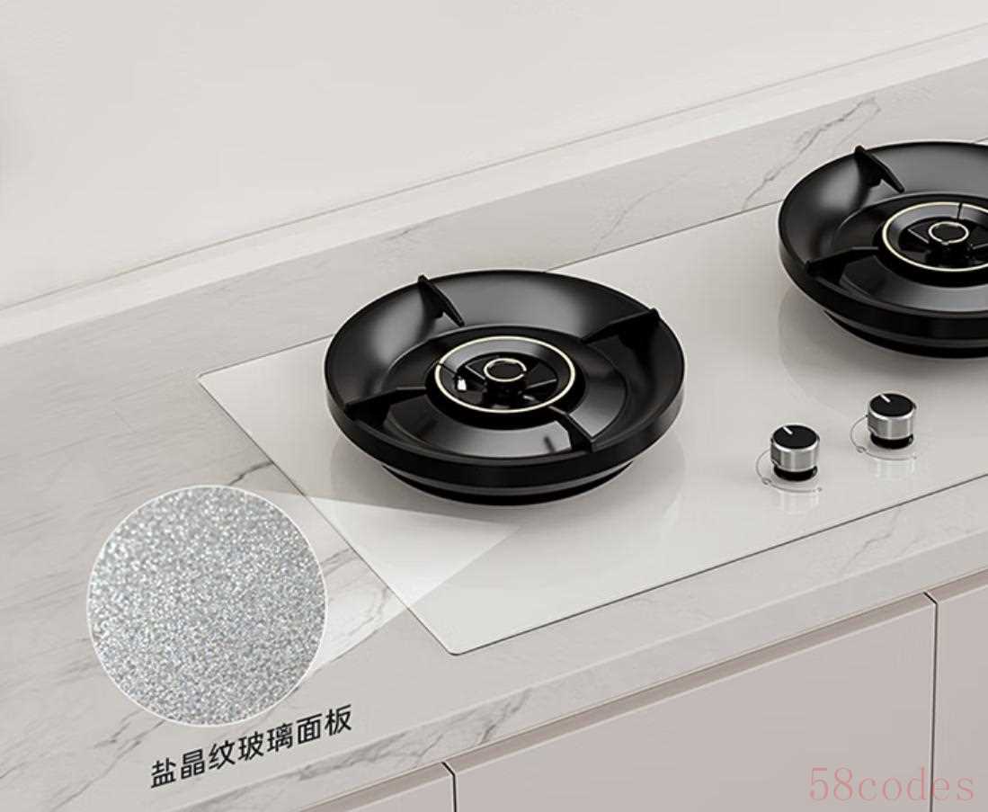 纯白盐晶纹玻璃面板,指纹油渍一抹没影,机身超薄740mm,小厨房也能塞。底盘650×350mm带R20圆角,老孔直接装,不用动刀。铜火盖抗锈,亚光搪瓷锅架拆下来就能洗。整机保五年,核心件八年,颜高又耐造,想升级厨房就它。