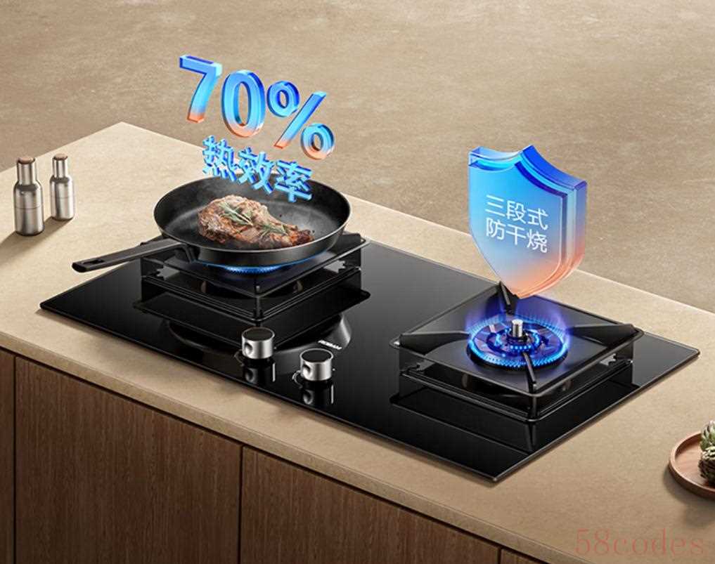 热电偶熄火0.1秒断气,童锁旋钮熊孩子拧不开,气密层层把关,漏气想都别想。180°旋钮想大想小随你掰,文火炖肉猛火爆炒全拿捏。想再懒点,升级款i10308D给你单灶定时180分钟,到点自己关火,还能联动油烟机,火一点烟机就转。底盘650-710×350-400mm随便调,旧灶孔直接塞进去。整机保五年,中端价高端料。