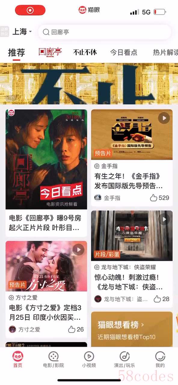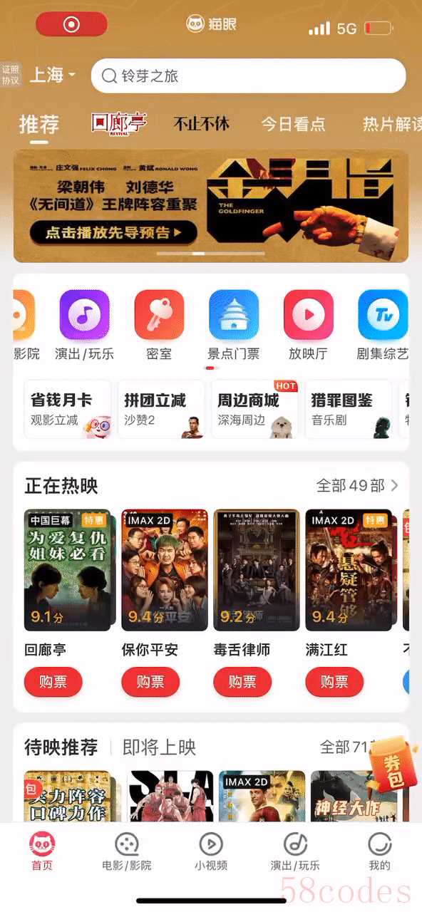 - 猫眼(7种):今日必抢、七日精选、月度看点、精选榜单、品牌馆、大咖新动态、为你推荐(Feed流)。