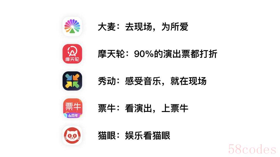 - 大麦:去现场,为所爱 (可以看出大麦主打的是现场文化)