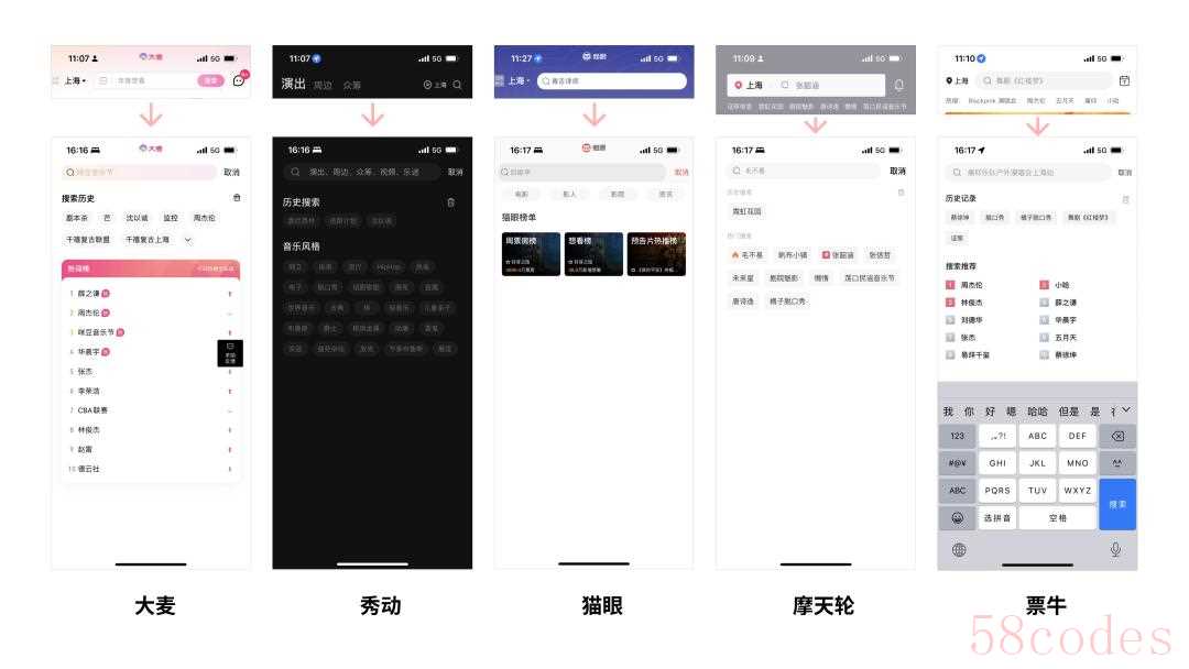 - 演出的具体名字:除非是营销做的很好的演出名字,如某某音乐节,用户从某社交媒体听说,然后打开票务软件搜索音乐节名字,否则一般是在内容区看到。