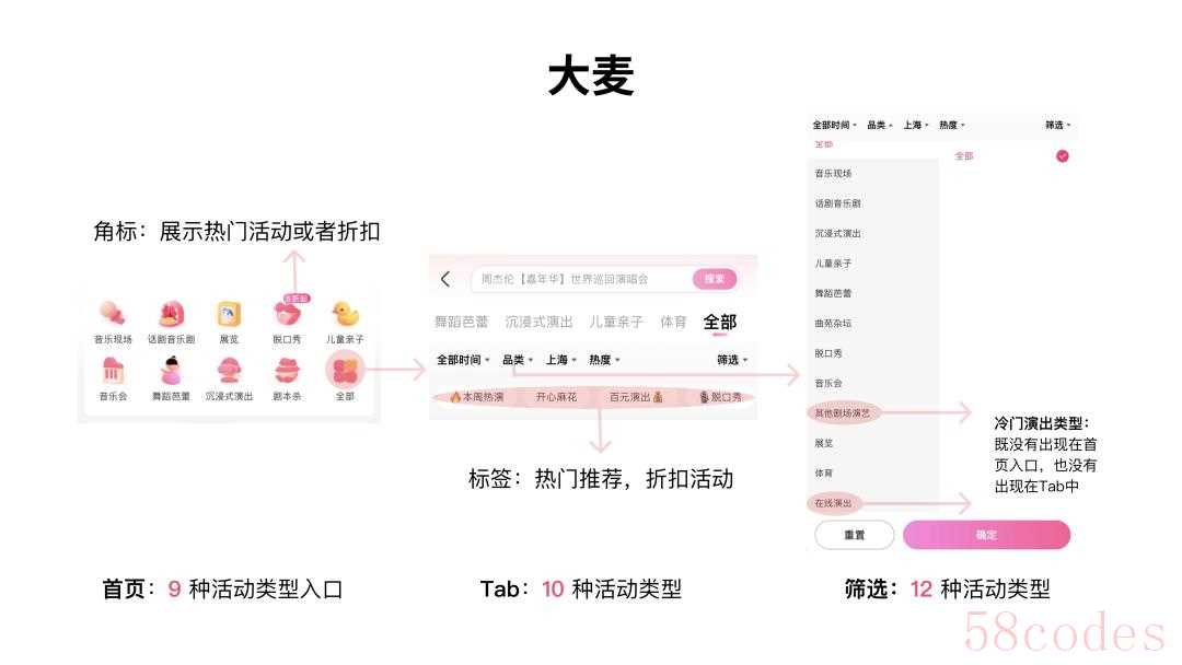 票务平台的受众众多,有些可能是想要定一场本周末的活动,有的想带着孩子看一场适合亲子的演出、有的想看一场今天的演出、有的想抢一些优惠折扣力度大的演出,每个人购票时的考虑因素不同,所以细分推荐演出是很有必要的。