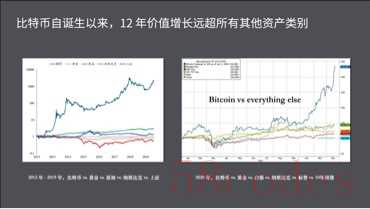 目前区块链最成熟的应用场景毫无疑问依然还是金融行业,其中以比特币为首的虚拟货币是非常成功的代表。胡怡莹解释,现在全球有三类数字货币,第一类是比特币等虚拟货币;第二类是Facebook推出的Libra这类全球性稳定币;第三类就是以数字人民币为代表的央行数字货币。在主权国家的框架和体系下,第三种是最主流的;但是要从全球范围看,第一类以比特币为主导的数字货币在接下来依然会有非常大的红利期。比特币在过去12年中发展非常快,比特币作为一种投资品,与原油、黄金、期货、上证、标普500所有的投资类别来比,它的表现一直远超上述投资类别;比特币和传统投资标的有明显的差异化,这意味着当主流资产在同涨同跌的情况下,比特币能够走出自己的独立行情。