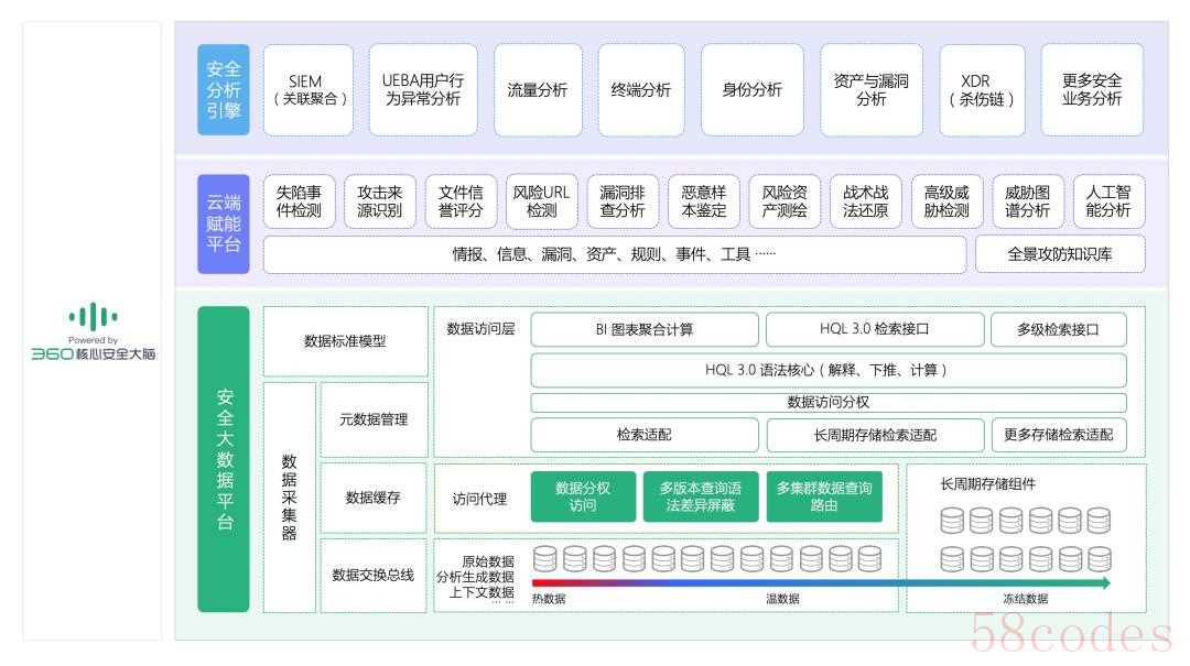 多年来,360政企安全集团在帮助政企客户利用数据驱动网络安全建设的过程中,构建了一套可以抵达云端知识、客户业务及生态数据的核心“能力门户”及运算分析的“中枢系统”——360核心安全大脑,包含一个安全大数据平台、一个云端赋能平台和多个安全分析引擎,以及内嵌360十七年经验所积累的实战方法论组成,负责全面体系化的核心运算及分析工作。通过联动“云端安全大脑”赋能360所有安全产品,能够助力网络安全产品的信息共享、大数据集中分析研判、高级威胁情报赋能、网络安全产品体系化联动、安全策略协同等全方面提升。