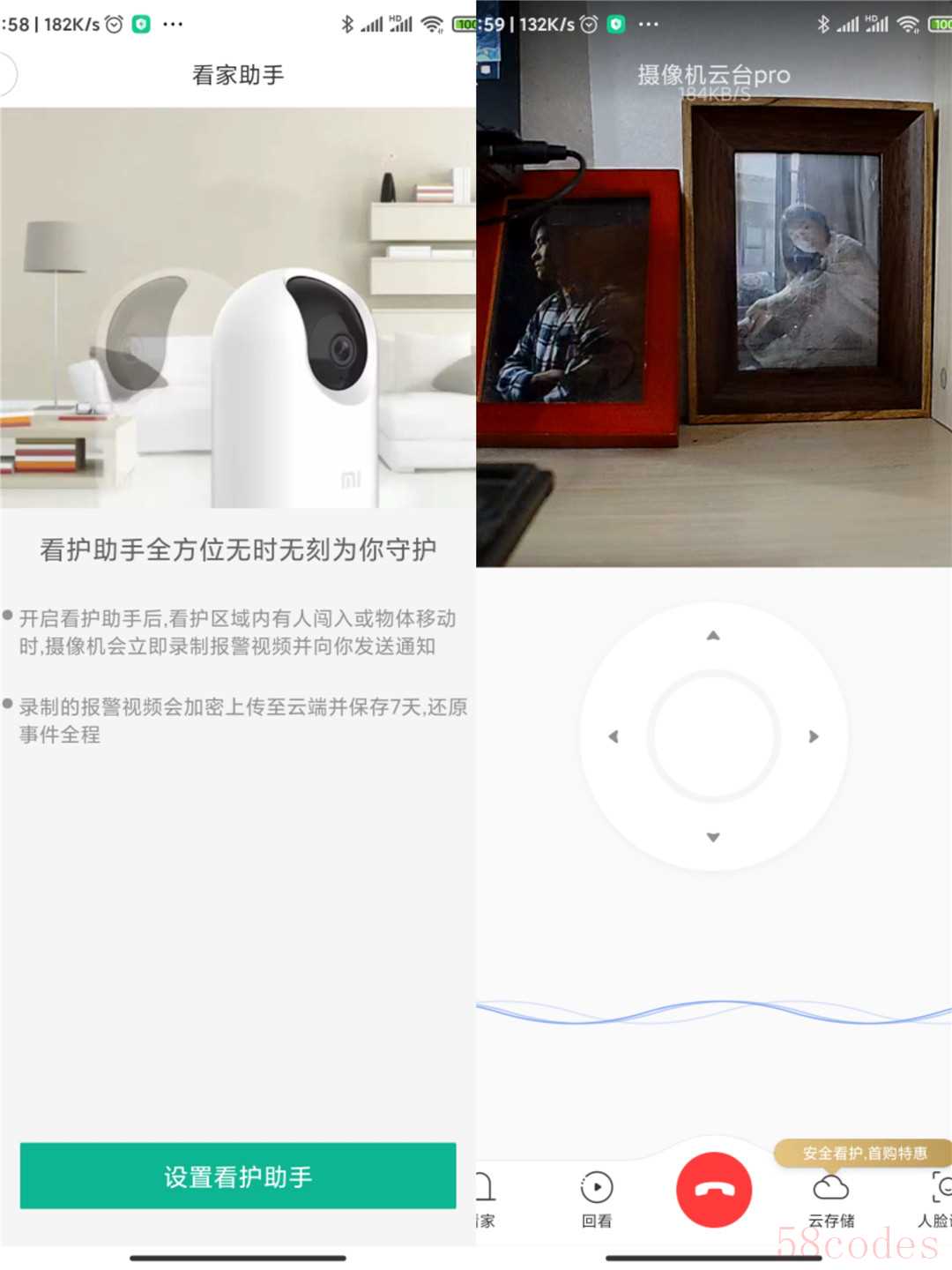 家里的摄像机最常用的功能是看家功能,打开看护助手后,看护区域内有人闯入或者物体移动,摄像机就会立即录制视频并发送通知到手机上,录制视频可以在云端保存7天,还可以设置看家时间段,设置敏感度,检测到画面变化时,会直接推送消息给手机,录制的视频可以保存在MicroSD卡内,最大支持32GB。