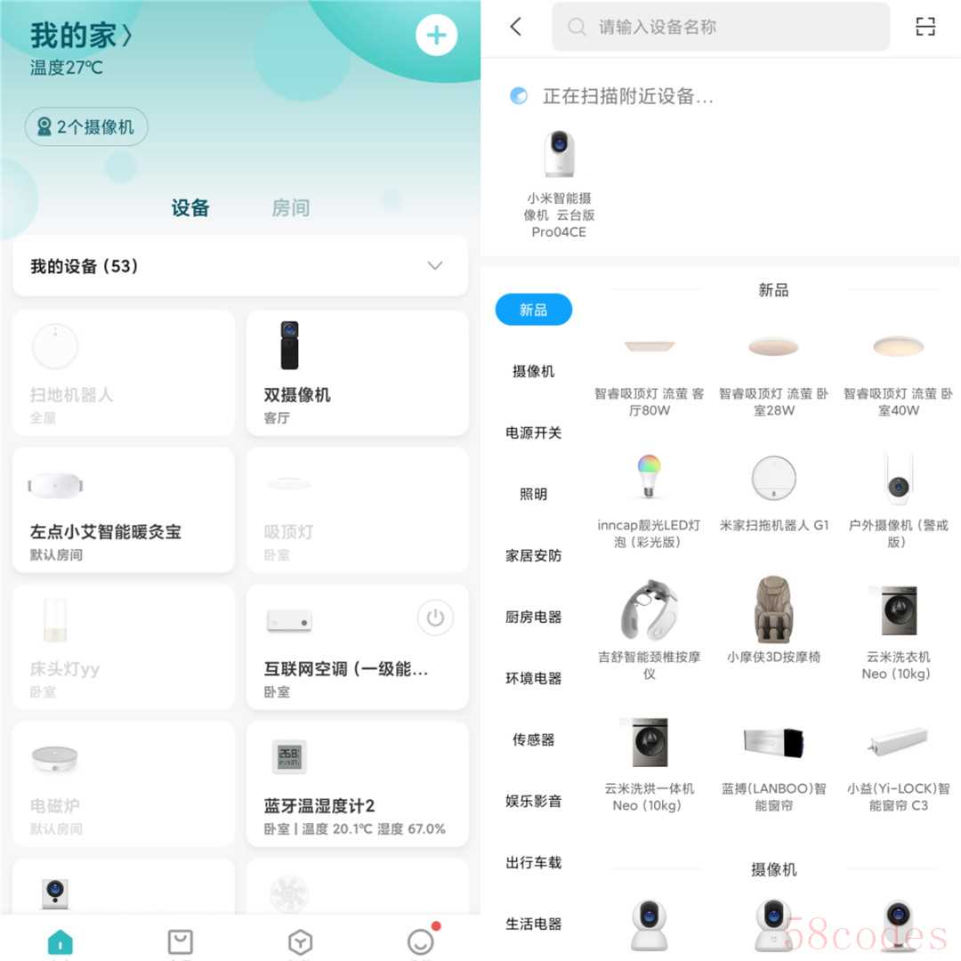 打开米家app,点击右上角的添加按钮,app会自动扫描周围的智能设备,一会儿就扫描出了小米智能摄像机云台版Pro,点击进行连接。