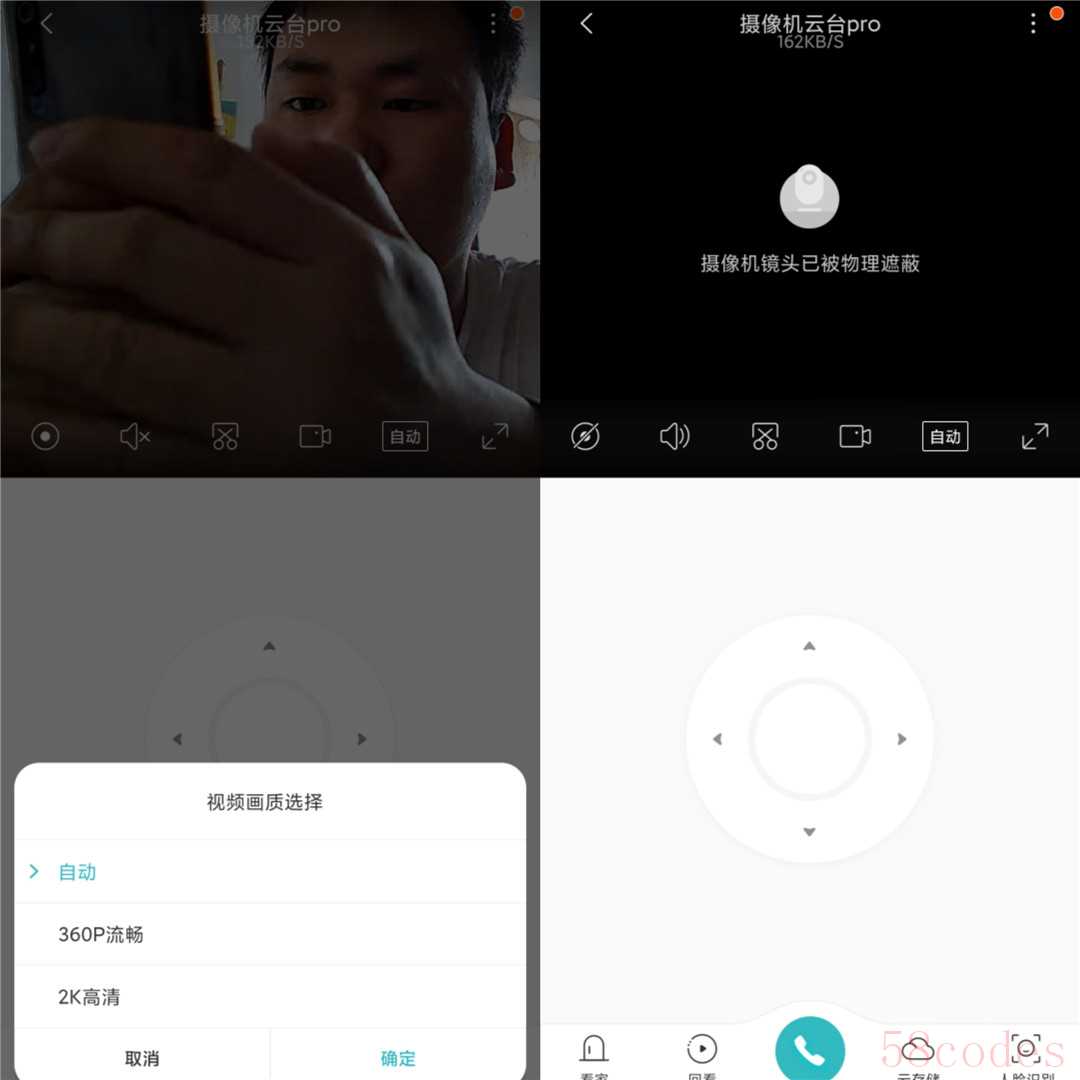 小米智能摄像机云台版Pro,可以设置视频画质的分辨率,可以选择360p流畅的画质,也可以选择2K高清画质。还有一个很贴心的功能,就是可以设置摄像机镜头物理遮蔽,当不需要摄像机看护时,只需要点击物理遮蔽功能,摄像机就会转到至外壳内部,无法录制画面。