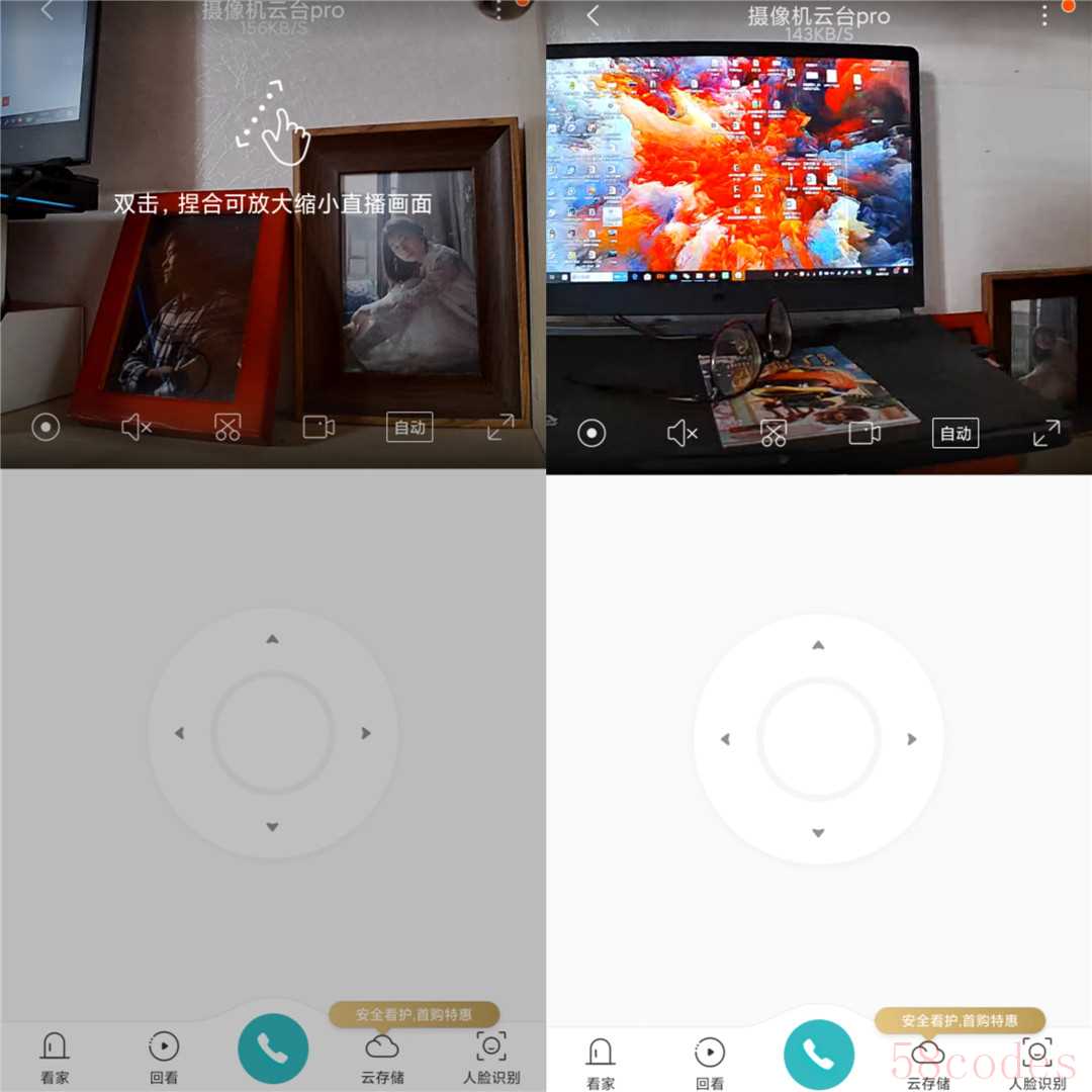 完成连接设置后,小米智能摄像机云台版Pro就可以使用了,第一次使用,会提示双击或撮合画面,可以放大或缩小直播画面。界面底部有五个功能,分别为:看家、回看、电话、云储存、人脸识别。小米智能摄像机云台版Pro,全新升级了300万超高清摄像头,分辨率高达2304x1296,比标准高清分辨率:1920X1080更加清晰,这次在镜头上,使用了6P镜头,F1.4大光圈,进光亮更多,即使在微弱光线下也能捕捉到画面细节,有效的降低光线折损率,成像更清晰细腻。