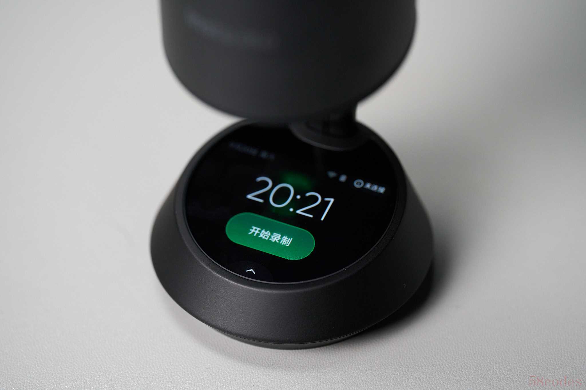 当支架升起时,你还会发现影石Insta360 Wave的底部拥有一个半圆形的屏幕,虽然面积不算大,但整体UI设计还算合理,哪怕是小雷这种大手掌也不容易误触。这一点比某些明明知道自己屏幕不大,还要把所有按钮都塞在一起的厂商好太多了。